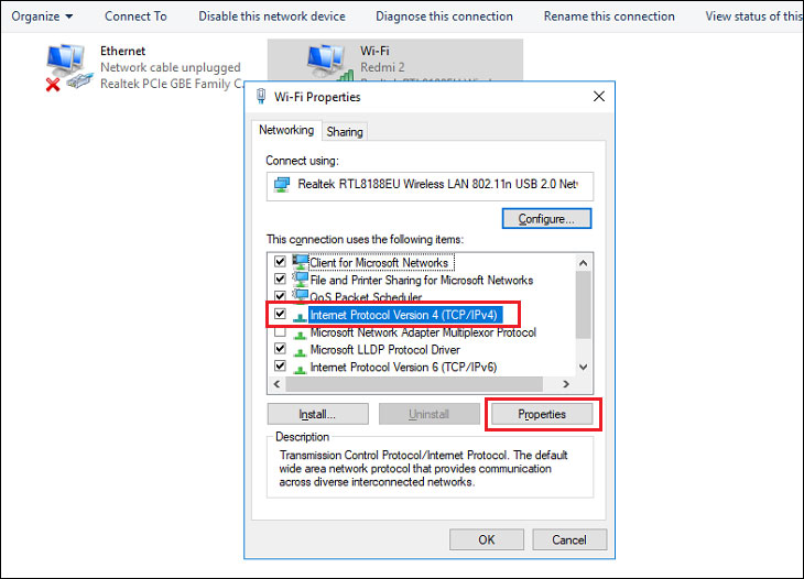 Bước 4: Lúc này, bạn click vào mục Internet Protocol Version 4 (TCP/IPv4) > Nhấn chọn Properties.