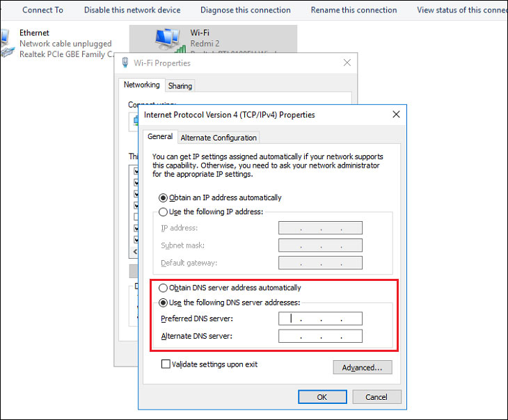Theo mặc định Windows sẽ tự động chọn địa chỉ DNS server cho máy tính. Thế nhưng, để có thể cải thiện tốc độ truy cập mạng, bạn cũng có thể chỉ định một DNS server cụ thể cho thiết bị của mình, bằng cách như sau: