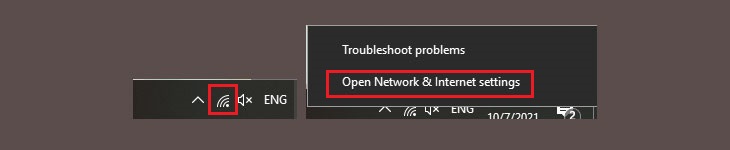Bước 1: Trên thanh Taskbar, click chuột phải vào biểu tượng wifi > Chọn Open Network and Sharing Center.